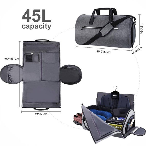 Converser 2 reistas heeft een fraai design en verandert als toverslag in enkele seconden van een plunjezak in een hangende kledingtas. Een geweldig cadeau om je kledingstukken netjes te houden tijdens het reizen. Opengeritst, hang je de tas aan een haak op, zodat jouw kleding uit kan hangen. Door de meegeleverde en verstelbare schouderband, en het stevige handvat is de weekendtas ook comfortabel over de schouder of in de hand te dragen.