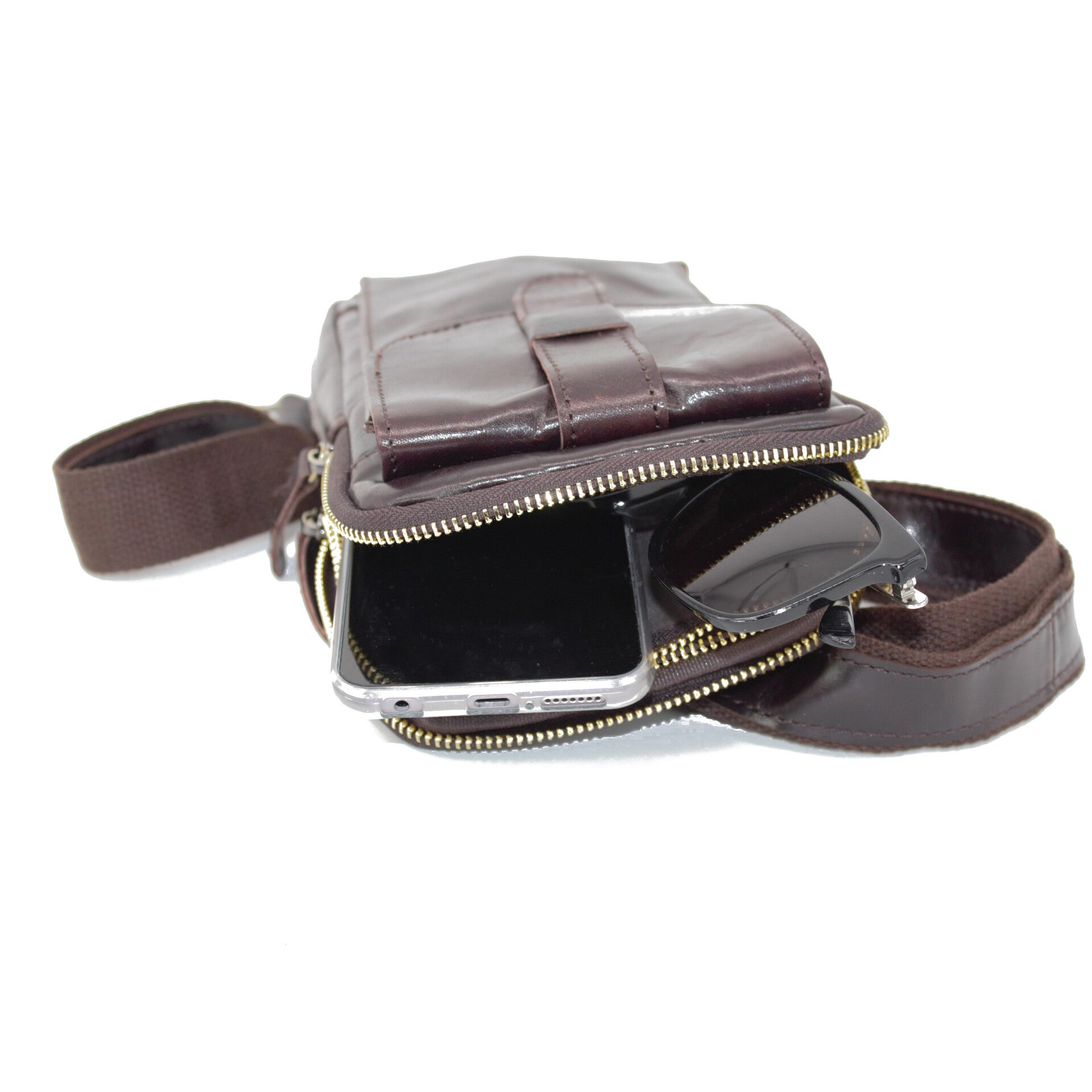 Galdiator 1 - leren crossbodytas - donkerbruin