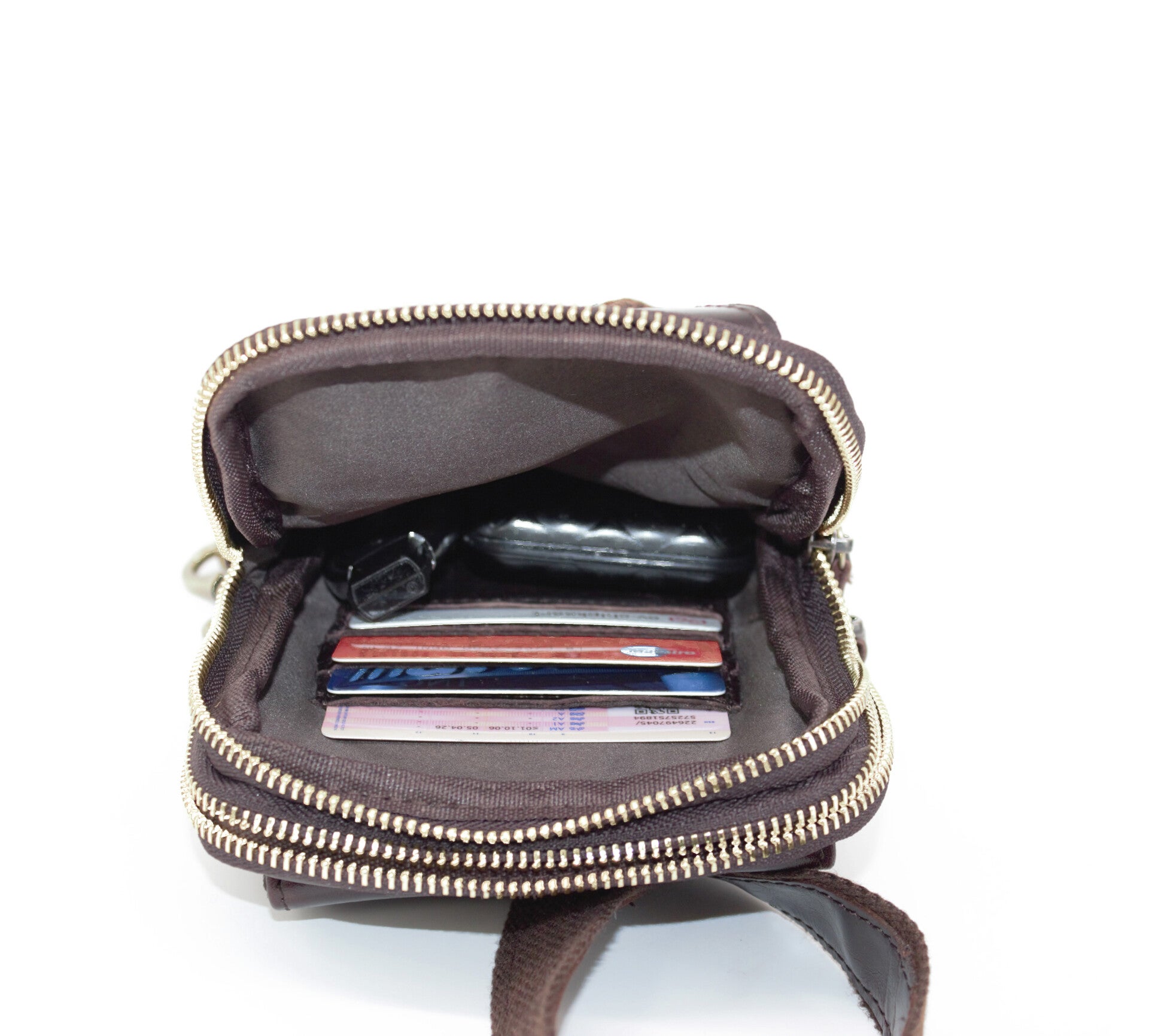 Dit tasje heeft twee hoofdvakken die met de rits afsluitbaar zijn. De achterste hoofdvak heeft ook een apart compartiment voor bijvoorbeeld het opbergen van sleutels, opladers of geld.